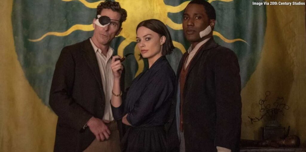 Stabilire di cosa si tratta è facile per i suoi temi semplicistici e difficile per quanto è inutilmente contorto. A livello di base, si tratta di un omicidio avvenuto negli anni Trenta che viene attribuito a un gruppo di amici che devono collaborare per capire cosa è successo e scagionarsi. C’è l’eccentrico medico Burt Berendsen (Christian Bale), l’esasperato avvocato Harold Woodman (John David Washington) e l’artista tormentata Valerie Voze (Margot Robbie) che hanno stretto un legame durante il periodo di guerra ad Amsterdam. Molti anni dopo, il gruppo si è diviso, ma Burt e Harold cercano di sostenere coloro che hanno prestato servizio dopo aver riportato gravi ferite. Nel frattempo, vengono contattati da Liz Meekins (Taylor Swift) per la morte sospetta del padre, il generale Bill Meekins (Ed Begley Jr.), che i due uomini rispettavano. Liz vuole che le portino i risultati di un’autopsia per determinare se c’è stato un omicidio. Per tutti i fan che speravano che il personaggio della musicista avesse un ruolo più importante, la sua rapida uscita di scena complica ulteriormente le cose, mentre inizia a prendere forma un insabbiamento.